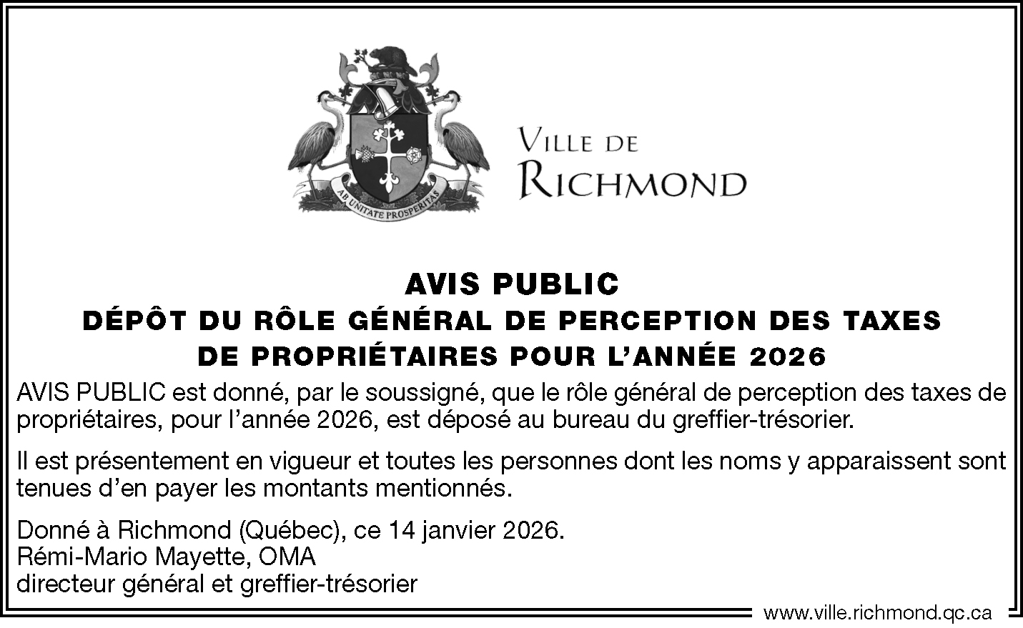 2026-01-05 - Avis public - Dépôt du rôle général de perception des taxes pour l'exercice 2026